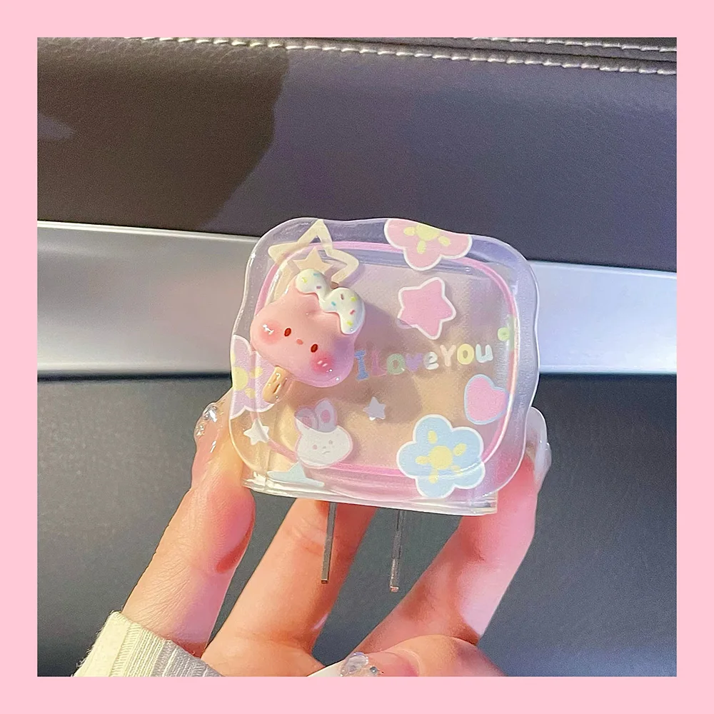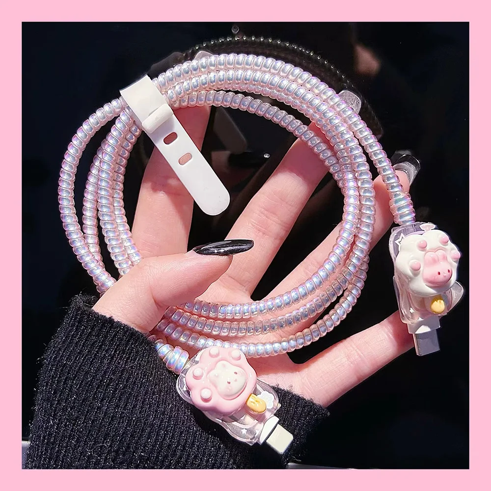 Ice Cream Cat Paw Bunny Charger Protector Cover For Apple Charger 18W 20W Silicone Case Cable Winder For iPhone 15 Power Adapter